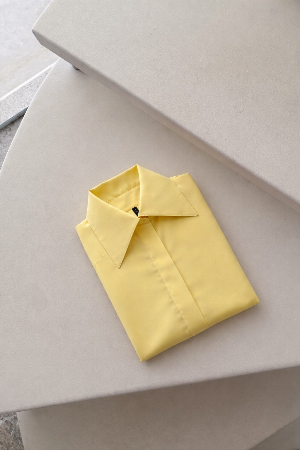 Uma camisa sofisticada e marcante, que rompe com o óbvio. Confeccionada em tricoline na cor manteiga, a peça traz botões com vista invisível, criando uma frente limpa que valoriza o desenho e a construção da modelagem.